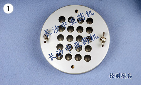 制作栓劑時,將栓劑溶液倒入手動20孔子彈頭形圓盤栓劑模具,將裝好栓劑溶液的模具放入冰箱冷藏一段時間,取出后用刮片將溢出的栓劑刮去,然后松模取栓劑。放到冰箱冷藏一下,更加有利于栓劑脫模.
