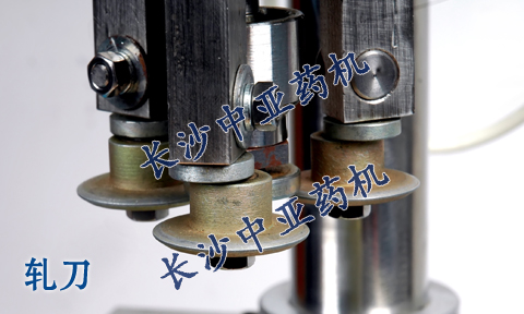 然后用一組瓶子,放在瓶座上,扳動手柄往上頂住,不要松手,另一只手握住軋刀延著瓶徑往里軋,上緊螺母,用同樣的方法上好其它兩把軋刀,使其三把軋刀處于同一平面上,這樣我們就上好了三把軋刀。接下來可以啟動機(jī)器,試軋一下,看一下效果如何,如有不滿意的地方,可以微調(diào)瓶蓋壓蓋頭。