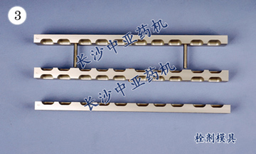 20孔鴨嘴形栓劑模具,采用中間定位,開模方式為左右開模 ; 而20孔子彈頭形栓劑模具和20孔魚雷形栓劑模具采用上下開模,20孔栓劑模具采用優(yōu)質(zhì)航空鋁合金加工制作,重量輕,陽極氧化處理,抗腐蝕性好,使用時間長;具有操作簡便,生產(chǎn)效率高, 合格率高,所制栓劑不易污染、給藥位置準(zhǔn)確;采用銷軸定位,定位準(zhǔn)確,閉合嚴(yán)密,栓劑易脫模,成型的栓劑外形完整光滑等等特點。